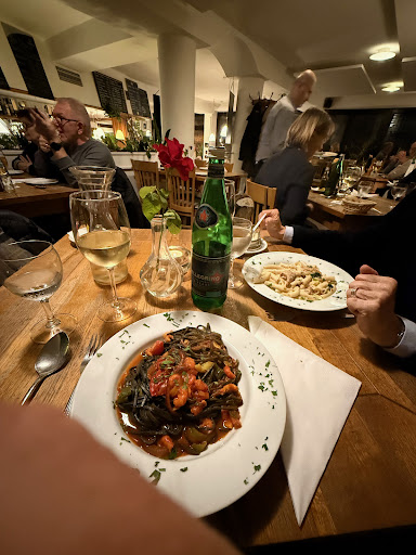 Read moreWir hätten wohl die ausladende Art zu Beginn nicht ignorieren sollen. Kann die guten Rezensionen hier leider nicht bestätigen. Das war wirklich das schlechteste, das ich je gegessen habe und ich bin wirklich keinesfalls ess-pingelig! Zunächst hatte der Kellner eine unfreundliche Grundhaltung. Darüber hinaus konnte er KEIN Gericht beschreiben. Auf meine Frage, welcher Salat zu den Calamari serviert würde, hat er mich (von oben herab) gefragt ob ich nicht wüsste was Calamari seien. Der Insalata frutti di mare löste das Geheimnis: Ein(!) Kopfsalatblatt und in Essig und Öl ersoffene Tintenfische. Die armen Dinger. Der Magen meiner Begleitung hat die hausgemachten und offensichtlich ungekochten Nudeln nicht vertragen. Gute Besserung! Der Salat mit Oliven unserer weiteren Begleitung war i.O. Leider hat der Kellner vom Knigge nichts gehört. Ich mogel da selbst aber der Kellner wusste nicht, was er wann abräumen darf: Kräuterbutter während noch jemand Pizzabrötchen aß aber bei meinen liegengebliebenen Frutti di mare nachfragen obwohl die allgemein gültige Kennzeichnung offensichtlich war. Und dann nicht einmal nachfragen ob etwas nicht stimmt. Ach, ich könnte hier noch seitenweise...