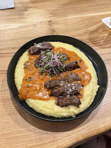 Read moreВнутри неуютно, холодно, в туалете сломан автомат, выдающий бумагу для рук. Работники ходят туда-сюда. По кухне: кафе специализируется на русской кухне, по этой причине и был нами выбран. Шашлык из свины - много жилок, тяжело жевать. Бефстроганов - вкусное пюре, вкусное нежное говяжье мясо, соус совершенно не по классическому рецепту (не понравился). Борщ - нет, это не борщ совершенно. Просто вкусный мясной суп. Помощь вам: борщ подается со СМЕТАНОЙ (в Германии это Schmand), а не с чесночным соусом. По напиткам - брали немецкое пиво, русский квас, коктейли - все были хорошо. Русского пива нет, если что. Пирожки - смешно, что в меню написано «на выбор», но учтите, не ваш выбор, а выбор кухни. Обычно всегда подразумевается на выбор гостя! Пирожок с картошкой был вкусный. По десертам: очень скудный выбор, в день нашего визита была всего два. Хотя на борде внутри самого кафе написано аж 4 разных вида, в том числе РУССКОГО НАПОЛЕОНА, но его там конечно же не было. Вообщем, голодными не ушли, но кухне далеко до русской. Не рекомендую...