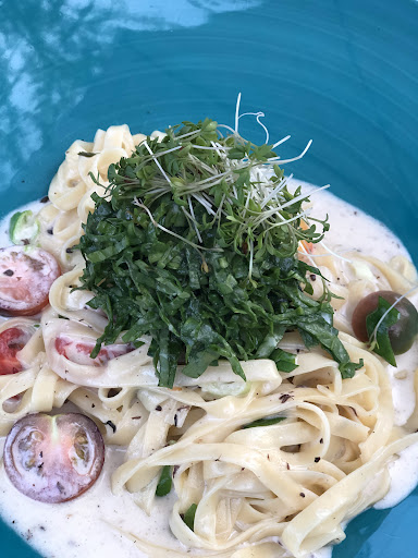 Die als vegan gekennzeichnet Vorspeise „Burratina“ war aus Kuhmilch (nach Rückfrage in der Küche) und die deutlich hörbare Lüftungsanlage wenn man draußen sitzt.