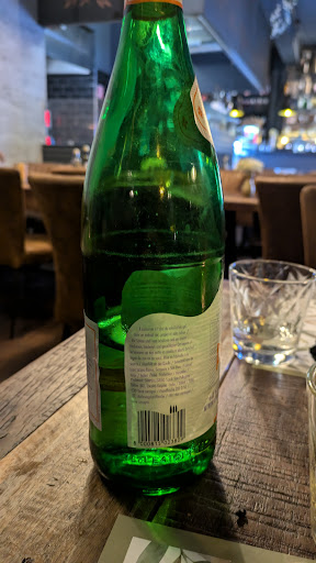 The bottle was brought to the table already open. It tasted funny. And upon inspection you can see old marks of limestone on it.