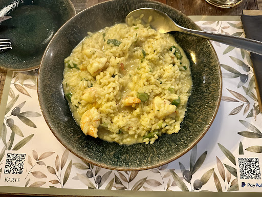 Read moreWir wurden direkt an der Theke platziert, mit Lärm von der Küche und Tabletts direkt im Rücken. Direkt neben meinem Ohr auf der Theke stand eine Musikbox, die den ganzen Laden beschallen sollte und mich leider fast taub machte. Alle paar Minuten rannten mehrere Fahrer von Lieferando ein und aus und gaben dem Ganzen eher das Gefühl, in einem billigen Imbiss zu sitzen, dabei ließen sie auch noch ständig kalte Luft in den Laden. Das Essen kam erst nach etwa einer Stunde, da man mehr mit den Lieferungen als den Leuten im Restaurant beschäftigt war. Eins der Gerichte war völlig versalzen, kam dann lediglich mit Sahne verdünnt wieder. Während des Essens kämpften wir dann mit mehreren Fliegen, die um uns herumschwirrten. Der Service war langsam und unorganisiert und ist mehrfach ohne uns zu beachten mit leeren Händen an uns vorbeigelaufen. Gläser blieben leer, dreckige Teller standen ewig herum. Einen Stern für die Pizzen, die wenigstens sehr...