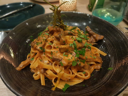 Ich hatte Pinguine in Parmesankäse Laib mit Trüffel für 21,90€. Ich kenne das so, hier wird der Käselaib an den Tisch geschoben, die Nudeln durchgezogen und direkt serviert. Meines sah aus wie eine Sahnesauce mit Trüffelgeschmack. Auf Nachfrage kam die Antwort wir machen das immer so. Sorry aber hier wird etwas verkauft was nicht geboten wird.