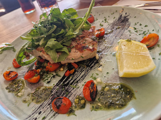 Wir wurden rasch und freundlich bedient. Das Ambiente drinnen ist ebenfalls sehr schön. Es ist ganz modern und trotzdem gemütlich/wohnlich gemacht wie ich fand. Wir bekamen dann vorab Pizzabrötchen mit Butter und Oliven. Die Pizzabrötchen waren richtig köstlich und fluffig/lecker. Nicht diese pappigen dichten und bisweilen trockenen Brötchen, die man sonst immer so bekommt. Ich hatte eine Pizza (#1 der Tageskarte, siehe Foto). Das war mit weitem Abstand eine der leckersten Pizzen, die ich über die vergangenen Monate gegessen habe. Sie war lecker gewürzt, reichlich belegt, & der Rand war genau richtig; kross und trotzdem innen drin fluffig. Einfach wirklich, wirklich lecker. Ich wünschte, das Restaurant, wäre näher an unserem Wohnort. Wir wären dann sicher Stammkunden.