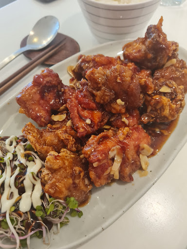 Read moreWe ordered the Fried chicken and Beef Bibimbap, they came together with side dishes as shown in my photos. The Fried chicken came with the white rice. The food portion here is very good with the price. My boyfriend who can eat a lot, could not finish his food.