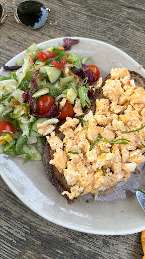 Da wir Hunger hatten, haben wir uns etwas zum Essen bestellt. Einmal das Rühreibrot und das Walnussbrot mit Ziegenkäse und Käse. Beides war sehr lecker.
