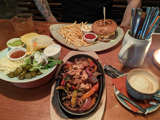 Read moreGood atmosphere inside, not loud music and pretty chill and dark. Food in general was tasty, but Fajitas with steaks and chicken had a really small amount of meat (can see on picture), mostly veggies, isn't worth the price. Keep in mind you are also only getting 4 pieces of small tortillas, so u will be left with a decent amount of lefover fillings for them. The burger was big, juicy, spicy and tasted well. Cappuccino being...
