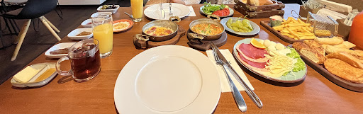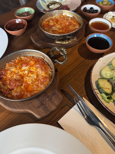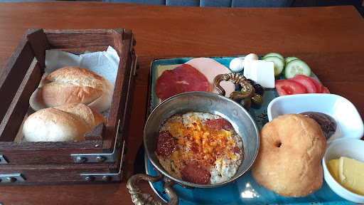 Read moreDas Café war von innen sehr schön eingerichtet. Die Deko, die Lichter, die Stühle, alles in einem schönen einheitlichen Stil. Wir waren morgens da und haben keine Reservierung gebraucht, da der Laden relativ leer war. (Freitag- und Samstag Abends gibt es in diesem Café Live-Musik!) Das Frühstück war sehr lecker, wir haben für zwei personen serpme bestellt und vor allem das menemen war sehr lecker! Jedoch waren die Brötchen nicht frisch, sie waren immer noch etwas weich, aber eher so als wurden sie nochmal warm gemacht. Es gab drei Wurstsorten, unter anderem Pastirma und drei Käsesorten, darunter Mozarella, Gouda und Beyaz Peynir. Es gab auch für jeden eine Börekstange mit Schafskäse, ein Pişi und jeweils ein kleines Stück Simit. Zusätzlich zu den Pommes und zum Patates Kavurması, welche auch sehr lecker waren, gab es viele verschiedene süße Aufstriche (Tahin, Pekmez, Honig, Frischkäse mit Honig, Nutella und Marmelade). Außerdem ist erwähnenswert, dass es unbegrenzt Tee während des gesamten Frühstücks gibt! Bei uns war der zweite Tee, der uns gebracht wurde nicht heiss, nur leicht warm, aber ich denke das kann mal passieren. Alle anderen Getränke müssen extra gekauft werden. Der Preis pro Person lag bei 17€. Im Großen und ganzen ein leckeres Serpme Frühstück und echt...