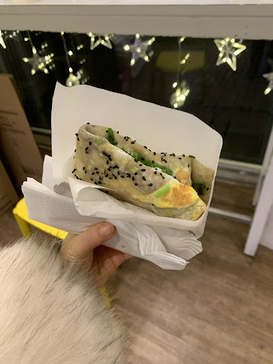 FOOD & DRINKS One item. The famous Chinese JiangBing, an authentic Chinese street food item. You can add various types of meat and make it more flavorful. I ordered mine pretty simple with just bacon. Imagine a sweet and savory crêpe with a layer of thin and crispy fried cracker for texture. Pretty good. I only wished I had some hot oil because some parts of the Jiangbing are a bit bland in their natural state.