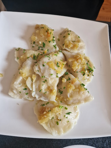 Wir orderten Biere sowie Vorspeisen und Hauptgänge. Das Stauder Pils aus Essen und die alkoholfreie Alternative mundeten uns sehr gut. Die Vorspeise, Schafskäse mit Gemüse war genauso Weltklasse wie die polnische Spezialität Pierogi mit verschiedenen Füllungen. Das Schnitzel meines Kollegen mit Bratkartoffeln war ebenfalls eine üppige Portion.