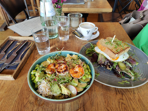 Read moreGeschmacklich gut, schönes Restaurant. Was mir immer sehr positiv auffällt ist das hier sehr gut eingekauft wird - also die Qualität der Zutaten ist immer top und frisch. Man kann im Hinterhof oder vor dem Restaurant draußen sitzen. Dadurch dass die Preise 2-3€ höher sind als im Nachbarcafé, war hier wenig los. Service freundlich.