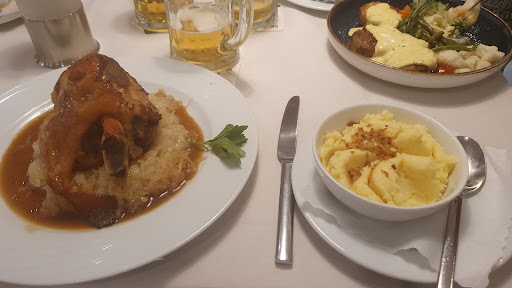 Read moreWir waren mit 7 Personen essen. Diejenigen, die Kurzgebratenes wie Fisch oder Steak bestellt hatten, waren zufrieden. Wir anderen 4 hatten 2xSauerbraten und 2xGänsebrust und -keule (34€). Leider war das Fleisch zäh und so hart, dass man es kaum schneiden konnte. Die Haut war labberig. Die Sauce zur Gans war wässrig und süß und die Miniknödel (pro Person 3 Stück) aus dem Beutel. Da wir alle zusammen essen wollten und keine Freunde davon sind, Essen wegzuwerfen, haben wir das Essen nicht zurückgehen lassen, aber doch nachher der Servicekraft unsere Kritik mitgeteilt. Sie meinte nur knapp, dass sie es weitergeben würde. Schade fanden wir, dass sie noch nicht einmal gefragt hat, ob sie uns als kleine Geste vielleicht mit irgendetwas eine Freude machen kann, einem Kaffee oder einen Schnaps o.ä. Der selbst bestellte Espresso und sogar 3 nachbestellte Miniknödel wurden (mit 2,80€) in Rechnung gestellt. Höchst...