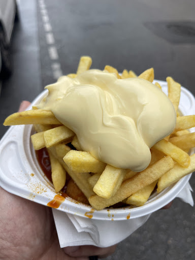 Read moreNach den Rezessionen hier wollte ich „diese“ Currywurst doch auch mal probieren. Also nach der Arbeit mal schnell vorbeigefahren und mir eine Currywurst mit Pommes und doppelt Mayo gegönnt. Wie hier schon häufiger geschrieben wurde, hätten die Pommes ruhig noch die ein oder andere Minute länger in der Fritteuse bleiben können. Die Currywurst dagegen war herrlich. Die Sauce war fast schon schmierig und hatte ein fantastisches Curry-Aroma. Die Wurst an sich hatte gut Biss und war sehr lecker. Und (ich kann es nicht anders sagen) die Mayonnaise war göttlich! … und die Plastikgabel ist so stabil und groß, damit macht das essen Freude. Preislich auch absolut in Ordnung.