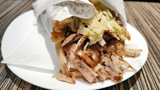 Statt "Kebab" gibt es "Pita", was mir persönlich deutlich besser schmeckt. Pita ist traditionell zu bereitet, wie hier eben, traditioneller Weise mariniertes Fleisch, auf einem Drehspieß angebraten. Kebab kann natürlich alles mögliche sein. Der Unterschied besteht in der Würzung: Pita eher mit Thymian, Oregano Knoblauch - Kebab hingegen eher mit Pfeffer, Salz, scharfer Paprika, Zwiebeln, Kreuzkümmel.
