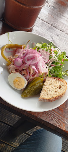 Read moreBei schönem Wetter ist es ratsam zu reservieren, wenn man mit mehreren Personen unterwegs ist. Aufgrund schönster Wetterlage und einem langen Wochenende machte jedoch der Service bereits bei der Frage nach unserer Reservierung einen etwas gestressten Eindruck. Bei zwei älteren Personen mit leichter Gehbehinderung war der uns zugewiesene Platz in Form einer Bankgarnitur (hier stand dann auch noch am einen Tischende ein Kaminofen auf einem Podest) alles andere als optimal und die Frage nach einem anderen Tisch wurde unwirsch abgewiesen. Da wir sechs hungrige Personen waren haben wir uns notgedrungen an diesen Tisch gesetzt. Bei der Essensbestellung wurde uns dann gesagt was bereits ausverkauft ist. Dies wäre eine nützliche Information vor dem Blick in die Speisekarte gewesen. Enttäuschend waren dann auch die Größen der servierten Speisen. Bei den Kässpätzle war das Salatbouquet beinahe doppelt so groß wie die Portionen selbst. Wir waren sehr froh vorab eine Tomatensuppe zu bestellen. Diese war heiß und geschmacklich sehr gut. Wir waren uns einig, dass die Suppe der beste Teil der georderten Speisen war. Unserer Ansicht nach auch die einzigen Portionen, bei der Preis und Leistung gepasst haben. Alles in allem war dies kein schöner Abschluss eines eigentlich sehr schönen Tages. Jedoch möchte ich abschließend noch anmerken, dass wir schon oft in dieser Location gewesen sind und egal ob zum Kaffee mit herrlichem Kuchen, Eis, kalten und warmen Speisen, immer sehr zufrieden waren. Es hat alles immer sehr gut geschmeckt und egal ob Service oder Küche gab es selten etwas zu bemängeln. Wir hoffen, dass wir an jenem Samstag einfach nur einen Ausnahmetag erwischt haben, geschuldet dem Traumwetter an dem Gäste genießen und das Personal heftig...