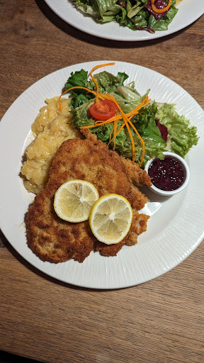 The atmosphere was veey cosy and the waitress made us feel very welcome although I speak limited German and need to look at the English version of the menu. Had the chance to tried their famous schnitzel, which blew my mind away! And also the egg noodle , which was delicious with the salad. Overall , I dont think the food was expensive compared to the quality it offered and the range of dishes offered, compared to the christmas market where one gluhwein already costs 4 euro nowadays. The architecture of the restaurant was very iconic as well, which is a cute little cottage among the cottage villages , would miss...