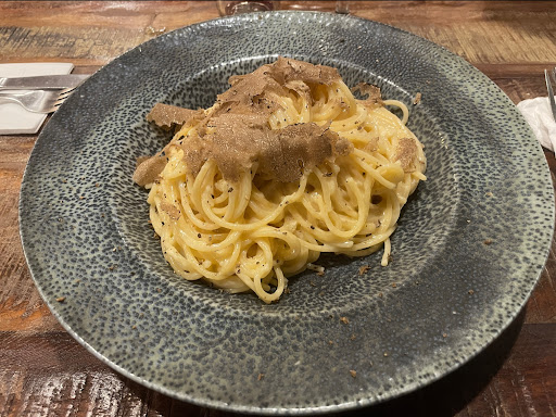 Read moreMit einer Gruppe von 9 Personen waren wir an einem Mittwoch Abend vor Ort und freuten uns auf einen gemütlichen Abend. Der Anfang verlief reibungslos und ohne Probleme bei den Bestellungen. Die Getränke kamen ebenfalls recht schnell zum Tisch. Ich habe mir die gemischte Vorspeisenplatte mit einer weiteren Person geteilt und war wirklich begeistert davon. Sehr lecker und von allem etwas dabei. Für zwei Personen die ideale Vorspeise zum teilen. Beim Haputgang muss ich allerdings sagen, dass die Spaghetti aus dem Grana-Padano-Laib mit schwarzem Trüffel nicht so sehr nach Parmesan geschmeckt haben. Auch waren diese sehr ölig. Die Gerichte kamen sehr verteilt aus der Küche. (Bei 9 Personen in so einem kleien Restaurant kann ich darüber hinwegsehen). Ein Gericht wurde allerdings dann komplett vergessen, worauf der Kellner patzig antwortete: "Ihr hättet ja schon eher mal nachfragen können". Wahrscheinlich hätten wir auch noch das ein oder andere Dessert oder Getränk bestellt. Aber nach dem abräumen der Teller kam niemand mehr zu unserem Tisch und die beiden (Koch und Kellner) waren für längere Zeit nicht mehr im Lokal. Die Lust darauf, weiterhin hier zu verweilen, verschwand und als wir dann Zahlen wollten musste einer von uns vor die Tür gehen und dort die beiden, die dort am rauchen und Pause machen waren, auffordern uns abzukassieren.