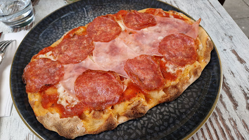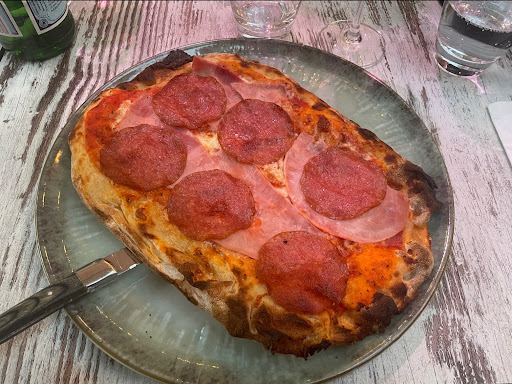 Read moreSind nach langer Zeit wieder mal hingegangen, um zu schauen, wie es jetzt ist und was soll ich sagen, es hat sich nichts geändert, eher ins Gegenteil, das Preis-Leistungsverhältnis ist echt teuer und der Service ist nicht gut. Wenn man bedenkt, dass es sich hierbei um eine Pizzeria handelt, sind 90 € zu Dritt echt viel. Wir haben zu Dritt fast 90 € bezahlt, für 2 Pinsa, 1 Pizza, 3 Salate und 4 alkoholfreie Getränke (Cola, Wasser, Saftschorle). Die Pinsa ist lecker, aber ungefähr die Hälfte von einer normalen Pizza, aber der Preis ist gleich oder sogar teurer für die Pinsa. Das Ambiente ist nett und sogar bei Regen kann man angenehm draußen sitzen, da es ein Glasdach gibt, unter dem man sitzt. Weshalb es uns jedoch immer noch nicht gefällt, ist, dass es zu lange Wartezeiten gibt. Wir haben 30 Minuten gewartet, bis wir überhaupt mal bestellen konnten, dann kamen zwar nach weiteren 10 Minuten die Getränke und nach weiteren 5 Minuten sogar der Salat, aber als wir dann noch mal knapp 20 Minuten auf die Pizza gewartet haben, da hat es dann völlig gereicht. Die Bedienung war zwar nett, wenn sie denn mal kam. Sorry, aber dafür gibt's noch nette 3 Sterne, aber wir kommen nicht mehr, die Zeit ist mir...