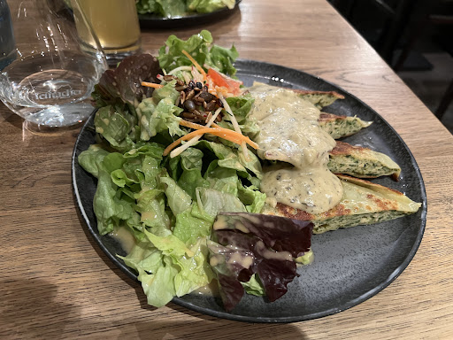 Read moreSO GOOD! This place has award winning food, and it shows. Delicious! I think it’s called ‘moutaschin’? Mine was salmon and spinach. Husband’s had tomatoes on top. So good! The dining room was crowded, but it was also cozy and friendly. The cherry/cream dessert was heavenly. An excellent end to the meal. Our server was right to recommend it. Thanks!! English menu and English-speaking server added to our comfort...