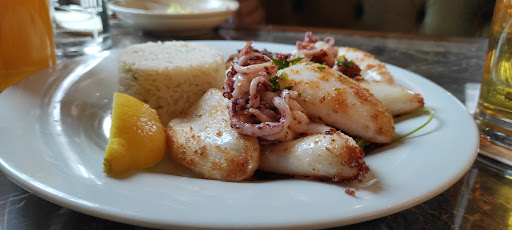We went into this restaurant expecting a traditional German restaurant but found a very good Greek restaurant right in the middle of the main square in Esslingen. The restaurant was really empty, but I think this is because of the date and time at which we arrived. We were greeted with some ouzos (Greek drink). We ordered some breaded zucchini, which were incredible, and a potato soup, which was also very very good. The main dishes were a combination of calamari and gyro meat, which were also very good but very very big, so we ended up not being able to finish them. At the end I ordered a double espresso which was ok, and the restaurant gave us some complimentary simple desserts made of Greek yogurt and sweet carrot. The staff was really polite and very friendly, and the restaurant does have a changing room for babies, but is not stroller/wheelchair friendly, as the main entrance has some stairs. I would definitely come back again, but hopefully sometime between 11 and 14:30, on weekdays, which is when they have their mid day menus at...