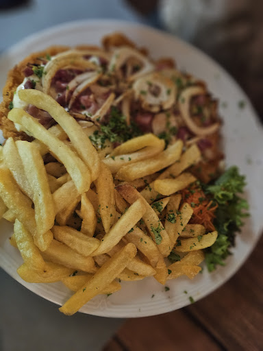 Reservierten hier an einem Samstag Abend um 18:15 Uhr einen Tisch für 4,5 Personen (lt. Telefonischer Auskunft sei diese Uhrzeit als 18 Uhr besser, da sich um 18 Uhr schon eine 11 Personenmannschaft angekündigt hätte und man dann mehr Zeit für uns hätte). Als wir ankamen wusste man von unserer Reservierung nichts mehr, wir bekamen glücklicherweise trotzdem einen Tisch. Dieser stand allerdings durch das Kopfsteinpflaster so schief, dass die Getränke vom Tisch rutschten. Auf Nachfragen wurde mit der Deko, die drum herum lag improvisiert, so rutschte wenigestens nichts mehr vom Tisch. Es war im Innenhof fast jeder Tisch besetzt. Die Servicekräfte waren nur wenig zu sehen.. und auch nach 1,5 Std hatte nur die größere Mannschaft ihr Essen, alle anderen nur Getränke. Wir, mit 2 Kindern, warteten geduldig. Das Essen kam auf Nachfragen dann um 19:50 Uhr. Der Salat ging geschmacklich und optisch leider überhaupt nicht. Total zusammengefallen, geschmacklich ungenießbar und für den Preis von 15,50 EUR absolut nicht gerechtfertigt. Es sah so aus, als hätte er schon ne Weile gestanden. Die Pommes waren leider versalzen. Das Schnitzel war in Ordnung, die Portionsgrößen auch. Das Radler ging zurück, da nicht süß sondern sauer, der Ersatz war ebenfalls sauer. Bezahlt werden musste es trotzdem. Auch auf die geäußerte Kritik am Schluss kam kein Entgegenkommen, auch keine Entschuldigung. Alles in allem ein Abend den wir uns ganz anders vorgestellt haben. Rückblickend hätte eine transparente Kommunikation der Servicekräfte alles etwas entspannt. Zum Beispiel ein "sorry heute ist so viel los, entschuldigt das lange Warten" oder "wir bringen schonmal das Essen für die Kinder" oder sowas ähnliches hätte uns schon gereicht. Aber es kam so leider überhaupt gar nichts. So schnell sehen sie uns leider nicht wieder, auch wenn es so schön ist in diesem...