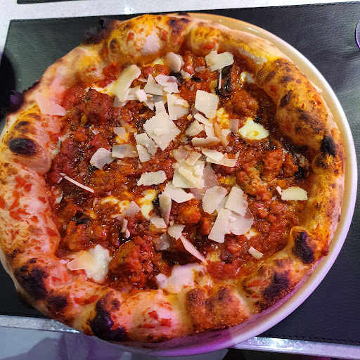 I searched out Pizza Napoli 2 (is there a Pizza Napoli 1?) for a good pizza in Ettlingen and was overwhelmed by the quality and the friendliness of the staff! On arrival at our table we received a complimentary half glass of prosecco, and alongside our drinks (nice cold Peroni) a basket of tiny pizza dough cuttings and a small bowl of seasoned olive oil (also complimentary!) These were absolutely delicious and whet the appetite for the excellent pizzas we were about to indulge in. The pizza was a very high quality neapolitan style with a Huge bubbling cornichon (crust). I had the polpette (aubergine meatballs with parmesan) and it was absolutely delicious! Lovely thin chew base and loaded with beautiful sugo and toppings. Highly recommend for great neapolitan style pizza for a reasonable price. Service was great, our waiter made a huge effort to speak English to help us out. The only thing to mention is: no AMEX, Mastercard or Visa so be sure to take cash to pay! N.B. My pizza (pictured) was perfectly cooked, though it weirdly looks raw due to the neon pink lighting in the...