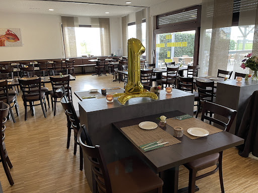 Read moreNeben der L607 zwischen zwei Seen und Ortsteilen, liegt das Gasthaus. Außen mit überdachtem Bereich, Betonfliesen, großer Parkplatz. Innen ebenso nüchternes Sportgaststättenflair. Einfacher rechteckiger Raum mit Theke, geometrisch angeordnete Wirtshausstühle und Tische. Aber auf jedem Tisch ein Väschen mit frischen Blumen und mit niedrigen Raumteilern wurde versucht manchen Tischen etwas Privatsphäre zu verschaffen. Bedienungen (3) nett und aufmerksam. Sonntags um 12:30 war bereits alles reserviert und belegt, es war aber trotzdem nicht zu laut im Raum. Große Essensauswahl und Tagesgerichte. Fleischlastig italienisch. Als Gruß aus der Küche gab es kleine Pizzabrötchen, schmackhafte Oliven und eine Tomatencreme. Das Essen war gut. Fleisch sehr zart. Suppeneinlagen alles selbst gemacht. Das Gemüse war mir etwas zu wenig und zu grob geschnitzt, außerdem gab es Zuckerschoten, die ich wegen der „Naht“ nicht leiden kann. Auf Nachfrage gab es auch noch mehr Sauce. Toiletten sind im gleichen Stockwerk gleich beim Eingang. Für Damen 2 Kabinen, kein/e Tageslicht/Fenster, Dauerlicht zum selbst...