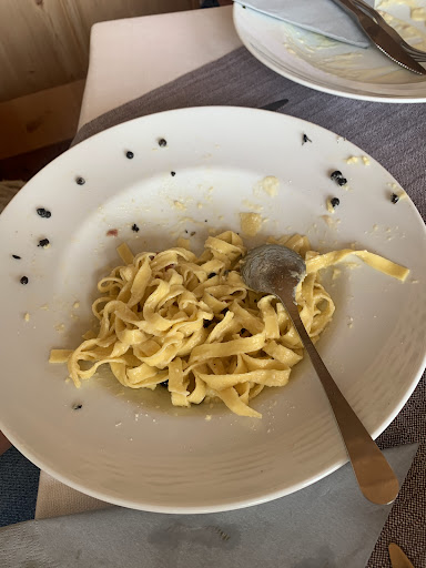 Read moreIn meinen Tagliatelle habe ich ein Metallartiges Stück (Tackerklammer oder so) und eine Fliege gefunden (Siehe Bilder, die restlichen schwarzen Dinger sind Pfefferkörner). Die Bedienung war beschäftigt mit anderen Kunden, es war mittags relativ voll, weshalb er nicht mehr zu uns gekommen ist, damit ich es reklamieren konnte. Als er am Ende dann zu uns kam um abzuräumen habe ich ihn auf die Mängel aufmerksam gemacht und es kam weder eine Entschuldigung noch die Kulanz es mir nicht auf die Rechnung zu schreiben.