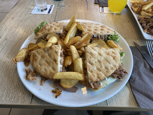 Das Essen ist frisch zubereitet, geschmacklich auf hohem Niveau und bietet eine abwechslungsreiche Auswahl von griechischen Klassikern wie Gyros bis hin zu Pizza, Pasta und Burgern. Besonders hervorzuheben ist der traditionell hergestellte Pizzateig, der mindestens 48 Stunden reift und für einen authentischen Geschmack sorgt. Auch die hausgemachten Saucen und das täglich frisch zubereitete Gyros zeigen die Liebe zum Detail in der Küche.