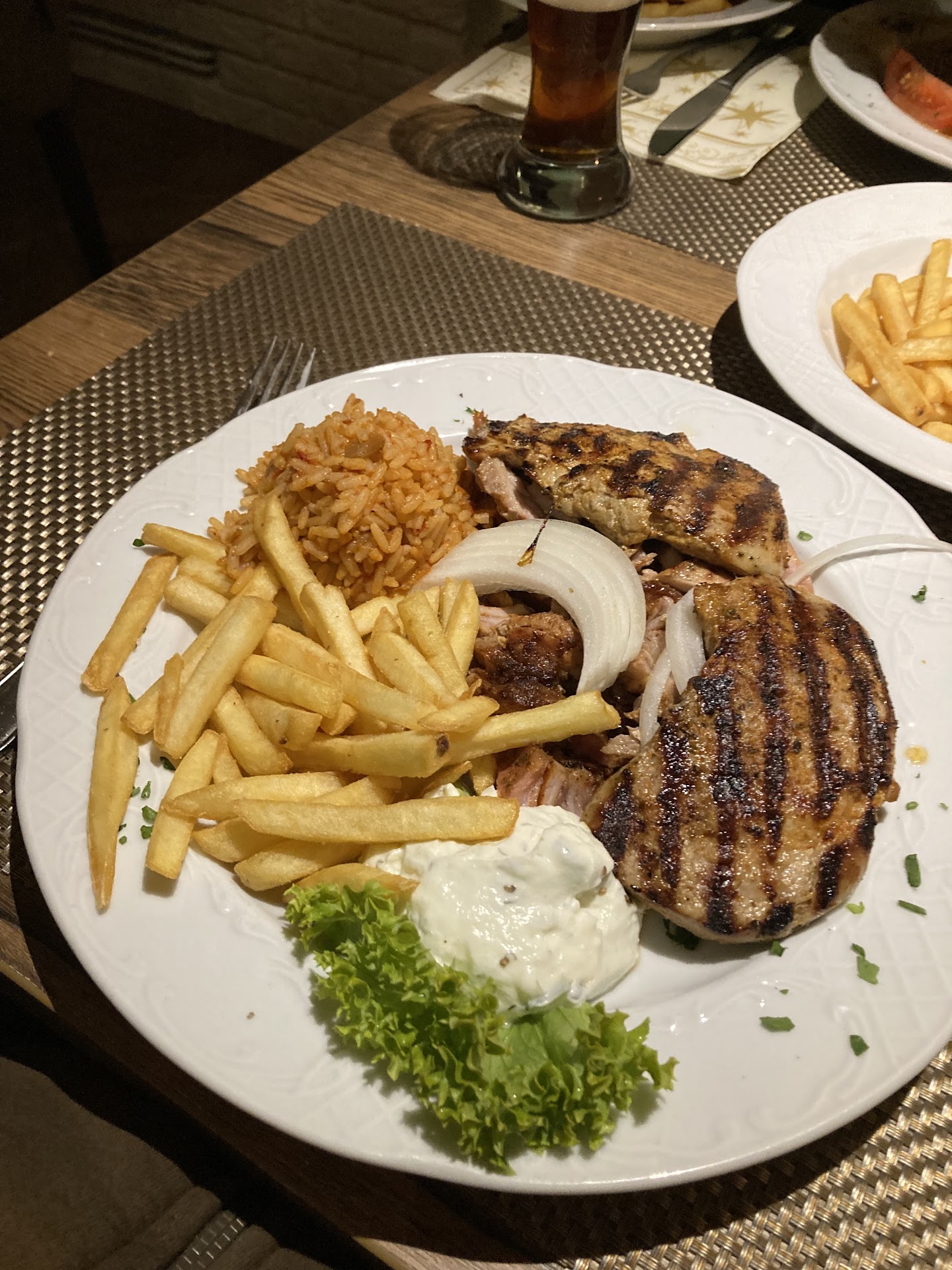 Wir waren heute im Rahmen einer Firmung mit 11 Personen vor Ort und sind am Ende ohne Hauptgerichte gegangen. Bei der ersten Getränkerunde fehlte ein bestellter Kiba. Das ist nicht weiter schlimm und passiert überall mal. Das Brot was wir in 2 Körbchen erhielten war oben schwarz verbrannt. Das war nicht schön und wir haben auch darüber hinweg gesehen. Richtig schlimm wurde es bei den Vorspeisen. Von 11 Vorspeisen wurden 7 gebracht. Die die ihre warme Vorspeise hatten fingen schon mal an. Die Zucchini war laut den Gästen nicht lecker und zu lange gebraten. Mein Tischnachbar hatte Oktopus der so schwarz war, dass ich ihn nicht gegessen hätte, aber laut meinem Tischnachbar war der wenn man das schwarze abgekratzt hat trotz allem lecker. Nach 15 Minuten reklamierten wir die fehlenden Vorspeisen an der Bar. Die Vorspeisen wurden gebracht, als die übrigen 7 bereits lange fertig waren. Der sehr nette und zuvorkommende Kellner entschuldigte sich und erklärte, das es in der Küche extremen Personalmangel gebe und sie für das riesen Restaurant nur mit 2 Kellnern seien. Wir hatten an der Stelle echt Mitleid mit ihm, weil wir das Gefühl hatten, die Entschuldigung kommt von Herzen und ist genau so gemeint wie er es gesagt hat. Das war dann auch der Grund warum wir wegen dem Salat nichts gesagt haben, obwohl wir diesen hätten zurückgeben müssen. Der Salat sah lecker aus und wurde auch mit einem leckeren Joghurtdressing an den Tisch gebracht. Anscheinend hatte man aber den Grünsalat direkt vom Waschbecken in die Salatschüssel befördert. Der Salat schwamm in Wasser. Einer der Salate war so voll Wasser, das wir damit ein kleines Wasserglas gefüllt haben. Aber wir haben es nicht reklamiert weil uns zum einen der Kellner leid tat und weil wir zum Anderen nicht als Querulanten auftreten wollten. Auf einmal wurde es laut und unruhig im Lokal. Man hörte minutenlang mehrere Menschen in der Küche schreien und Türen wurden geknallt. Wir warteten erst einmal ab, aber nachdem der Streit in der Küche und im Nebenraum immer lauter wurde und man hörte, wie der Chef den Kellner feuerte, haben wir dann den Abend abgebrochen und sind ohne Hauptgericht nach...