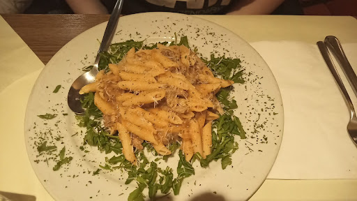 Read moreDas Restaurant bietet Platz für rund 60 Gäste. Das Ambiente ist angenehm. Die meisten Plätze sind an Tischen für 5-8 Personen. Als einzelner Gast sitzt man vorzugsweise direkt neben der Eingangstür. das Personal ist freundlich und bemüht, aber nicht vom Fach. Ich habe das Restaurant insgesamt zweimal besucht ( böse Zungen könnten nun behaupten: Einmal und nie wieder, nein!) und keine außergewöhnlichen Wünsche gehabt. Gnocchis mit einer pikanten Soße und Minigarnelen. Insgesamt war es lecker, aber ein bisschen wenig. Entgegen anderen Bewertungen, glaube ich, die Gnocchis waren nicht selbstgemacht sondern aus der Tüte. Für 8,50€ als angepriesenes Tagesangebot mag sich da jeder sein eigenes Urteil bilden. Beim zweiten Besuch sollte es einfach Lasagne und als Nachtisch Tiramissu sein. Zur Lasagne (auch 8,50€) hätte ich Brot erwartet, welches ich auf Nachfrage auch bekam. Der Nachtisch Tiramissu ist leider durchgefallen. Wenn ich mir das Zuhause so zusammengeklatscht hätte, wär das okay gewesen. Beim Italiener für 5,00€ das Stück darf ich mehr erwarten. Da neben der Bestellung der Lasagne auch die Tiramissu deutlich zu lange gedauert hat, gehe ich davon aus, das sie erst zur Zeit der Bestellung hergestellt wurde. Vier Löffelbiskuits mit Mascapone überschüttet und mit Kakaopulver abgestreut, fertig. Das konnte sogar ich sehen. Nach zweimal probieren ging die Tiramissu anstandslos zurück. Schade das Panna Cotta aus war. Insgesamt kann man hier nett und gut essen, die durchschnittliche Bewertung von augenblicklich 4,6 Sternen kann ich aber nicht bestätigen. Das Restaurant ist nicht schlecht, aber auch nicht besonders gut. Nach Google-Kriterien stehen die gegebenen 3 Sterne für "alles okay". 2 Sterne aber schon für "Nicht so gut". Im Sinne einer objektiven Bewertung gebe ich dann...