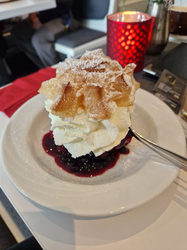 Selbstgebackene Kuchen und Waffeln, insbesondere die Kliff-Waffel, oder Eisbechern sind hier sicherlich zu empfehlen. Die Kuchen und Torten werden eher großzügig geschnitten. Es gibt auch kleine warme Speisen, die ich selber aber nie gekostet habe. Preislich passt es vollkommen.