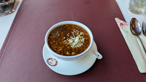 Also alles in allem ein Schöner Innenraum der leider von den Tischdecken zerstört wird. Ganz guter Service, wenn man sich bemerkbar macht. Das Essen ist gut nur wird in der Karte wohl etwas übertrieben. Ein paar fettige Stücke sind noch zu entschuldigen.