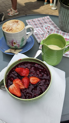 Die Speisen sind lecker und teilweise wirklich groß für wenig Geld. Denkt bei milchreis zweimal nach ob ihr wirklich den großen bestellen wollt. Auch die Waffeln sind mächtig.