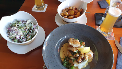 Unausgewogene Preispolitik: das Wiener Schnitzel war durchschnittlich von der Qualität, aber reichlich. Der Fisch Teller in selbigem Preisniveau und mit Dreier Fisch -Varianten ist zu hochpreisig, wie alles hier, aber in Vorspeisengröße.