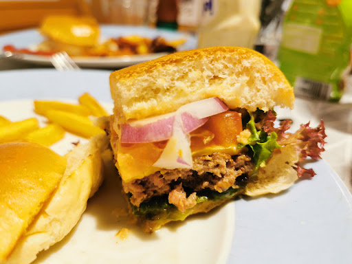 Read moreIch hatte für letzten Freitag für drei Personen reserviert. Soweit, so gut. Unseren Tisch haben wir auch bekommen, dann passierte erstmal nichts mehr. Auf Nachfrage durften wir dann endlich unser Essen bestellen. Die Burger waren lecker (allerdings das Pulled Pork sehr trocken) aber recht klein und die Wartezeit war lang (ca. 30 Minuten). Eine Person am Tisch wollte noch etwas nachordern, doch es kam niemand an den Tisch. Erst auf Zuruf konnte sie bestellen. Nach ca. 15 Min. Wartezeit (das Lokal hatte sich mittlerweile gut geleert) ging sie nach vorne, um zu fragen, wann die Nachbestellung käme (Chicken Fingers - die gibt man in die Fritteuse, das dauert nicht lange). Sie fragte direkt in der Küche, wo sie erfuhr, dass es keinen Bon dazu gäbe, man würde es aber direkt zubereiten. Nach weiteren 15 Minuten und wieder auf Zuruf erfuhren wir, dass die Chicken Fingers gleich kämen. Wir erklärten, dass wir mittlerweile eineinhalb Stunden vor Ort wären, in der Zeit niemand mal am Tisch war, um eine weitere Getränkebestellung aufzunehmen oder zu fragen, ob alles in Ordnung sei, würden wir diese letzte Bestellung stornieren. Die Kellnerin wurde sehr patzig und meinte dann, sie könne auch nichts dafür, sie seien nur zu zweit im Service und hätten nur einen Koch. Mir ist die Lage in der Gastro durchaus bewusst. Wenn man jedoch Reservierungen annimmt, erwarte ich einen zügigen, freundlichen Service, ohne dass ich ständig rufen muss. Dann darf ich keine Walk ins annehmen. Oder ich muss den Gästen von vorneherein sagen, dass es länger dauern könnte. Wir hätten sicherlich das eine oder andere Getränk noch zu uns genommen, wenn jedoch keiner eine Bestellung aufnimmt, habe ich auch keine Lust, ständig nach einer Bedienung zu rufen. Nochmal würde ich dieses Lokal...