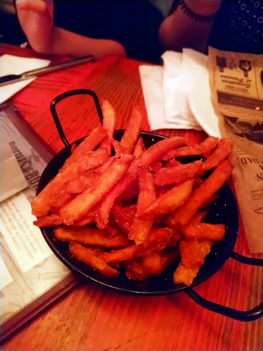 Read moreFür das gebotene Essen ist es einfach viel zu teuer. Geschmacklich ist es ok, die Patty's haben ein guten Geschmack, schöne Röstaromen und die BBQ Soße war echt lecker, aber die Portionen sind für den Preis einfach viel viel zu klein, das steht in keinem Verhältnis zu einander. Und dann war es geschmacklich nicht so überragend das es diesen Preis rechtfertigen würde. Der Service war meiner Meinung nach unterste Schublade. Wir mussten mehrere Minuten im Eingangsbereich warten um zu unseren Tisch geleitet zu werden, wären eine Service-Mitarbeiterin private Gespräche an der Kasse geführt hat. Es musste erst eine andere Servicekraft kommen, bis man sich um uns gekümmert hat. Am Tisch müssten wir dann verhältnismäßig lange warten, bis wir unsere Bestellung aufgeben konnten. Man hat auch die Bestellung der Gäste neben uns, die nach uns kamen, zu erst aufgenommen hat. Das Essen kam dann natürlich auch erst später. Also erst lässt man uns am Eingang warten und dann werden auch noch andere Gäste vorgezogen. Schlechter geht es schon fast gar nicht mehr, wären da nicht doch noch die Getränke. Durch die Bank weg wurden diese in zu geringen Mengen ausgegeben. Keins der von uns bestellten Getränke hat es bis zur geeichten Markierung geschafft. Und was sollen diese Mini Gläser mit den Dips? Wie soll man ein Zwiebelring mit über 5 cm Durchmesser in ein Dip tauchen, wenn das Gläschen nur eine Öffnung von 3 cm hat? Und dann sind diese auch noch so Tief, dass man selbst mit einen durchgebissen Onionring nicht weit genug un das Glas hineinkommt... Die Räume sind viel zu hell beleuchtet, aber man scheint hier auch noch mit der Beleuchtung zu experimentieren, die Decken sind voll mit Abdeckungen, an deren Stelle wohl Mal irgendwann eine Lampe hing. Ansonsten gehe ich dann doch lieber noch Mal in die Abendschule wenn ich wieder auf Stühlen der Klassenzimmer der 90er Jahre sitzen möchte. In einem Gastrobetrieb muss ich das nicht haben. Das erweckt auch nicht den Eindruck eines rustikalen Ambiente. Das ist einfach nur billig und rechtfertigt die Preise noch weniger, genauso wenig wie die bunt...