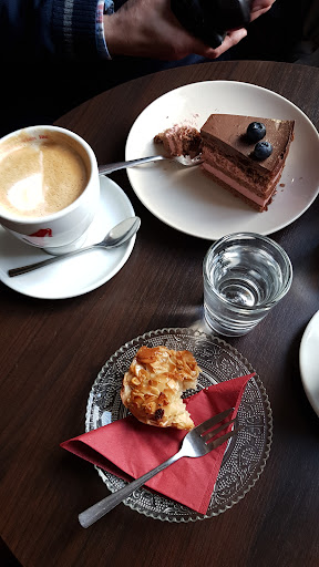 Read moreDer Cappuccino war gut, obwohl ich einen Kleinen bestellt hatte, kam ein Großer. Und da kommen wir schon zum Service. Wir durften uns nicht unseren Platz heraussuchen, sondern wurden platziert, alle anderen übrigens auch. Insgesamt wirkt das Café auf den zweiten Blick eher einfach, man sitzt zwischen Ikeamobiliar dass seine besten Tage schon hatte. Wir bestellten Glühweintorte und Florentiner. Beides schmeckte gut. Der Preis vom Florentiner war nicht vermerkt, weder vorne an der Theke noch in der Speisekarte, mit 3,20€ wie sich schlussendlich herausstellte empfand ich das im Gegensatz zur Torte unangemessen.Toiletten sind für Frauen und Männer in einem Raum, ohne Abtrennung, die Spülung funktionierte nicht. Durch die Enge des Gastraums würde ich es als wenig...