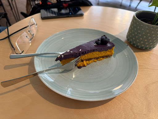 We totally loved this place with my husband, especially the coffee, it was so rich and flavored. We try the traditional type but they have a more fruity one that we're looking forward to comeback and try. I'm vegan but my husband is not, so we really enjoy this type of places where you get a lot a vegan options but also a few not vegan, it's nice to choose and this way you can share with others. The place has a few tables on the street but also they've a little back garden, we're one can sit, it's nice and cosy, but you have to go around the Coffeeshop to get there. The only downside we saw, was that there was no menu anywhere else but in the front desk, so when you're sitting in the garden, you have to go around the coffeshop to get to the front desk and see what else they have. Maybe it would be a good idea to put littles QRcodes outside so one can read what else it's on the menu. As another plus, they also have vegan options for their summer coffee, for example, vegan ice cream for the affogato. It was a really good experience and we are definitely...