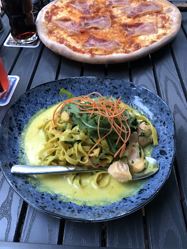 Read moreThe good: the restaurant has one of my favorites terraces/Biergarten in Fürth, quiet, surrounded by green and next to the river. The service is friendly and the kitchen has a big window/glass door that allows you to see the pizza making process and the boys there put a really cool show. The pizzas menu is good, not too extensive but with enough options. The pizza itself is nice, with a good crust and good ingredients ratio. The pasta is also ok. The price point I think is really good for the portions and good ingredients. I love that they offer gluten free pasta, I am not sure if is handled correctly to not be cross contaminated, but the offering is really nice. The alcohol free beverage selection is also pretty nice. The not so good: I don’t recommend the beef carpaccio, the Parmesan is not fresh, is pre-cut cheap cheese and the beef could be better. The mozzarella in the cáptese salad could also be better, but is standard.