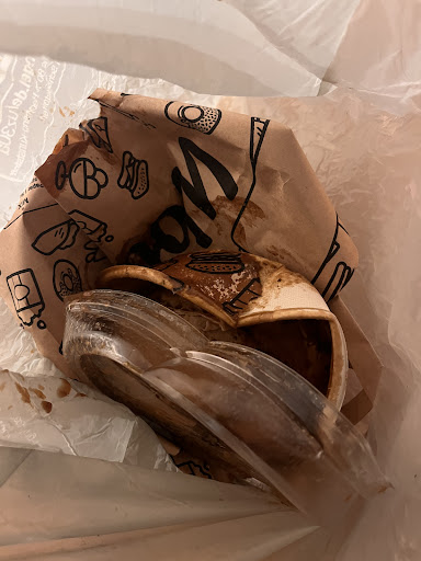Leider kam das Essen aufgrund einer total ungeeigneten Verpackung komplett kaputt bei uns an. Es lag alles in der Tasche des Fahrers verteilt. Die Soße hat den Karton völlig durchweicht.