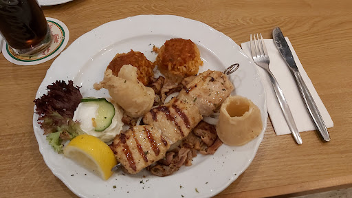 Read moreGyros mit Bifteki war nicht richtig heiss. Gyros Kalamares war mittelmäßig. Das Essen war innerhalb 15 Minuten da, was schon sportlich für 2 Essen. Das Gyros hauchdünn geschnitten. Ich hatte viele Krümel in Grösse von 0,5 cm. Hat für mich nichts mit Gyros zu tun. Es schwomm im Fett, Bifteki und Gyros nicht gut gewürzt, Pommes hätten noch gern länger in der Hitze bleiben können. Der Beilagensalat sehr dürftig. Paar Salatblätter auf Teller trauert mit 2 hauchdünnen Gurkenscheibchen und 1 Schnitz Tomate und 1 kleiner Esslöffel Krautsalat, Dressing lieblos drüber gekippt. Tzaziki war lecker. Die Portionen für den Preis relativ klein. Bakkava war sehr lecker, aber für 5,90 Euro sehr kleine Portion. Der Kaffee ist durchschnittlich. Der Service war freundlich. Für insgesamt 49 Euro gibt es weitaus...
