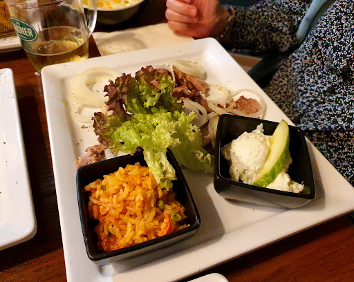 Meine Freundin bestellte sich "olympia teller" Dieser schicke Teller war eine große Portion Gyros und ein Suvlaki- spieß. Der Tomatenreis waren nur zwei kleine Häufchen. Aber insgesammt war der Teller mit Salat sehr viel zu essen. Geschmacklich auch gut!
