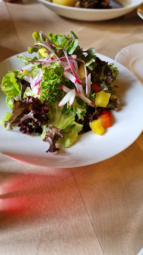 Was soll ich sagen, es war alles perfekt!! Schon der Vorspeisen-Salat und die Suppe waren hervorragend und obwohl auf traditioneller Basis immer mit einem gewissen Etwas zubereitet, dass für schöne Überraschungen sorgte. Man merkte schon hier, dass die Küche hohe Ansprüche umsetzt. Der Hauptgang war ebenso perfekt. Die Zutaten exzellent und mit Kochkunst und eigener Note zubereitet. Die frische Zubereitung war deutlich zu schmecken, das Fleisch zart und saftig, alles im richtigen Grade gebraten oder gekocht. Schmackhaft, interessant aber nie aufdringlich verfeinert. Was für uns immer sehr wichtig ist: Die Saucen: Allesamt ein (frisches!!) Gedicht. Die Dessert-Variationen schlossen dieses herrliche Mahl nochmals perfekt und sehr fein ab.