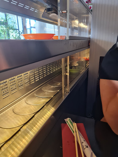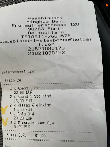Read moreWaren gestern wieder im Wasabi. (Prime Time 20 Uhr an einen Samstag) Wie man raus hört, bin ich dort des öfteren. Sonst bin ich meist zufrieden. Natürlich kann es mal vor kommen, dass beim Running Sushi nicht das komplette Band voll steht. Sonst wurde uns vorgeschlagen, dass wenn wir etwas bestimmtes möchten, könnten wir dieses auch gerne von der Karte bestellen. Qualitativ ist das Essen für Running Sushi auch gut. (Deshalb 3 Sterne) Doch gestern war es nicht zufriedenstellend. Als wir unseren Tisch bekommen hatten, hat uns der Kellner nur schnell Servietten, Schalen und Stäbchen auf den Tisch gestellt und ist wieder weg. Nachdem wir ihm nachgerufen haben, dass wir gerne Getränke bestellen möchten, kam er kurz wieder. Auf diese haben wir 20 Minuten von unseren 1 Stunde bestellten Running Sushi warten müssen. Doch das größere Problem lag darin, dass in der gesamten Zeit das Band so gut wie leer durch gelaufen ist. So gut wie keine Auswahl an Sushis nur warme Gerichte wie Frühlingsrollen, Nudeln, Hähnchen, Shrimps etc... ist ja auch toll, doch ich bin zum Sushi essen dort und genieße gerne die Abwechslung. Ich hab dann dazwischen schon mal der Kellnerin gesagt, dass es zu wenig gäbe, doch auch dann hat sich nichts getan. Am Ende bei der Rechnung habe ich es dem Kellner nochmal nett gesagt, dass ich des öfteren hier sei und es diesmal nicht gut war und zu wenig Auswahl gegebenen hat. Was dann aber bodenlos war, war die Aussage vom Kellner: ja ok, aber er hat ja gesehen, dass ich viele Teller hatte und grinste. Naja ok, was soll ich machen wenn ich für 1 Stunde bezahlt hatte in der Hoffnung, es kommt noch genug und als das nicht geschehen war, habe ich natürlich auch andere Gerichte gegessen um satt zu werden. Nach dieser kundenfreundlich Reaktion werde ich mich wohl so schnell nicht mehr dort blicken lassen. Ich geh gerne, wenn alles passt in den gleichen Laden zum Essen aber hier bin ich erstmal raus.
