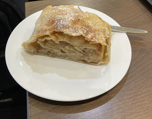 We sat down at a table inside. The Cappuccino was prepared nicely and had a pleasant flavor. The Apfelstrudel had a lot of layers. It was pretty good. The Chococino was my favorite item. It was packed with flavor.