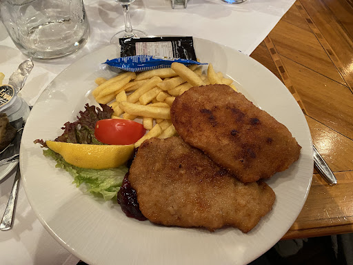 Good Bavarian dinners with a nice atmosphere, though some challenges. Sometimes, English menus are not available and wait staff have limited English, if any. The servings sizes are generous, very beneficial if you have been spending the day with a lot of physical activity like hiking, skiing, or swimming. The Schweins-haxe, an upper pork leg portion is quite impressive with a slow cooked pork flavor and crispy crackling. The bed of sauerkraut, dumplings, and sauce complement well. The Wiener Schnitzel with fries is a thin, tenderized veal cutlet, breaded and fried. The Brook Trout - locally sourced and well prepared, though not exceptional. Topfenstrudel - Apple Strudel - cinnamon, apples, and raisins in a baked pastry served with warm vanilla custard. -- Second Visit Spaghetti Bolognese - noodles were excellent, slightly al dente. The sauce was fresh with sufficient ground beef (or as they say "ox"). Große Chèf Salatbowl - Chef Salad - this was an amazing presentation - and a salad with a lot of good protein. Comes with [2] grilled chicken skewers, several shrimp, a hard boiled egg, on a bed of various garden vegetables. Münchner Tellerfleisch Tafelspitz - this is a boiled beef tip with root vegetables served with boiled potato & fresh...