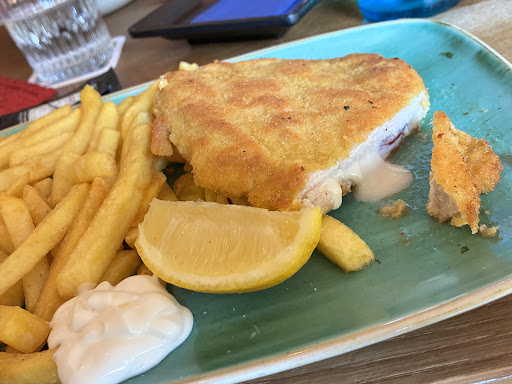 Service. Prompt, and quick food delivery. Would have preferred to wait to ensure crackling was indeed crackling. Provided takeaway containers without charge. Included a €2.50 pp service charge (or approximated 10%) of the bill.