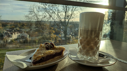 Read moreWhile travelling solo I came here for an afternoon snack on a weekday November afternoon. It wasn't very busy and therefore easy to get a seat by the window for the beautiful view over the city. I got a Latte Macchiato (5.90€) and a piece of pie (4.90€). The pie was delicious, the latte was average. I really appreciated that the server spoke such excellent English, and even offered to help me translate the menu (thankfully google translate camera worked well). Overall this was an enjoyable spot to relax for a bit and...