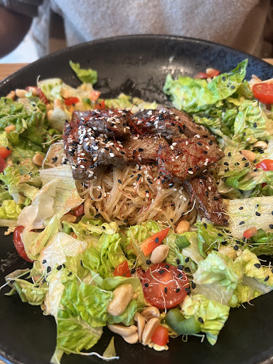 Nach zehn Minuten kam die Servicekraft lustlos und absolut genervt guckend angeschlurft, würdigte uns keines Blickes und auf meine Frage, ob wir eine Speisekarte haben könnten, kam nur ein: „die liegen vorne bei der Kasse. Bitte selber holen“. (Allen anderen wurde sie gebracht)… Wir saßen am Tisch, der am weitesten von Küche & Kasse entfernt war - es war jetzt nicht mal ein eben kurz aufstehen und danach greifen. Verwundert habe ich sie dann geholt, zu perplex um darauf zu reagieren. Nachdem wir dann das Essen bestellt haben, saßen wir eine Stunde dort, bis es kam. Das Kindergericht: lieblos 4 Nuggets neben Pommes, ein ca 50 Cent großer Fleck Ketchup. Die Teryaki-Bowl mit dem Hähnchen war dann das Negativ-Highlight. So gut wie kein Reis auf einem großen Salatbett, das Hähnchen war mini und total verbrannt, kaum Soße und Gemüse.