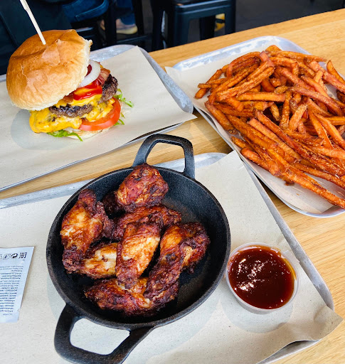 Could be the first tasty burger in Germany :p I would still add more spices to the meat (tried patty on its own and it was not too flavourful, but with sauces and other ingredients it makes a really tasty burger). Very good wings, delicious sweet potato fries BUT portion was way too big - we received a mountain of fries, had to take most of it to go (checked at home and we had to get like almost a 0,5kg). Don't get me wrong, it was delicious and I appreciate generosity, but knowing the size of the portion I would not order it a second time, for me it should be a side. Very nice, and...
